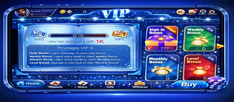 Users can play slots, Teen Patti, Rummy, dice, spin wheel, and other mini-games. This variety keeps the platform engaging and prevents boredom.
